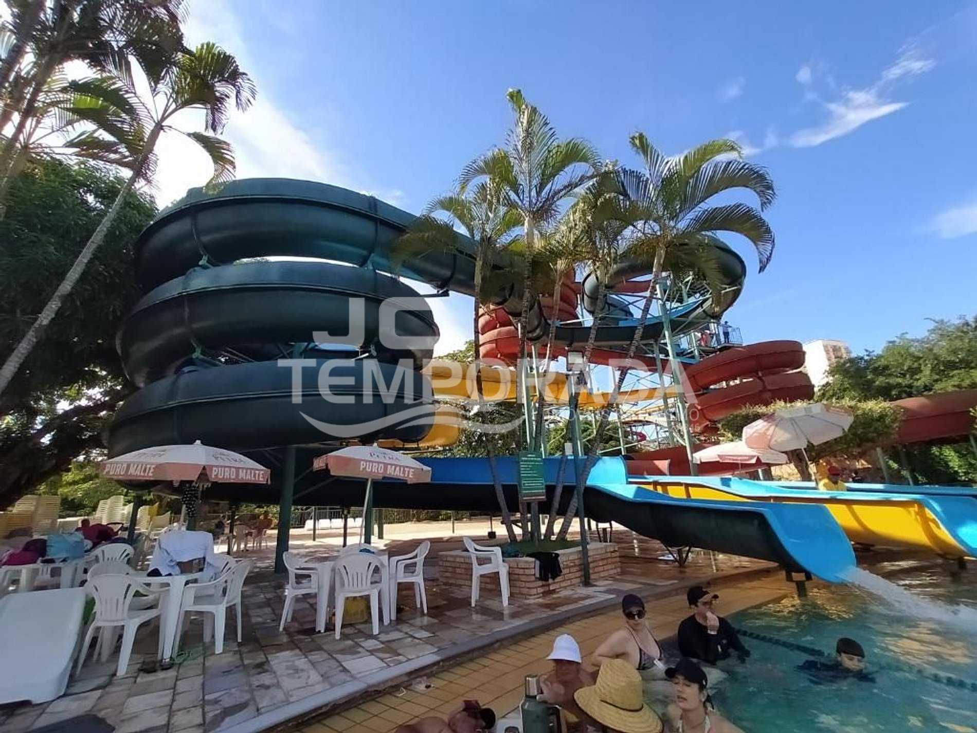Clube com mais de 20 piscinas quentes e frias, sendo algumas: